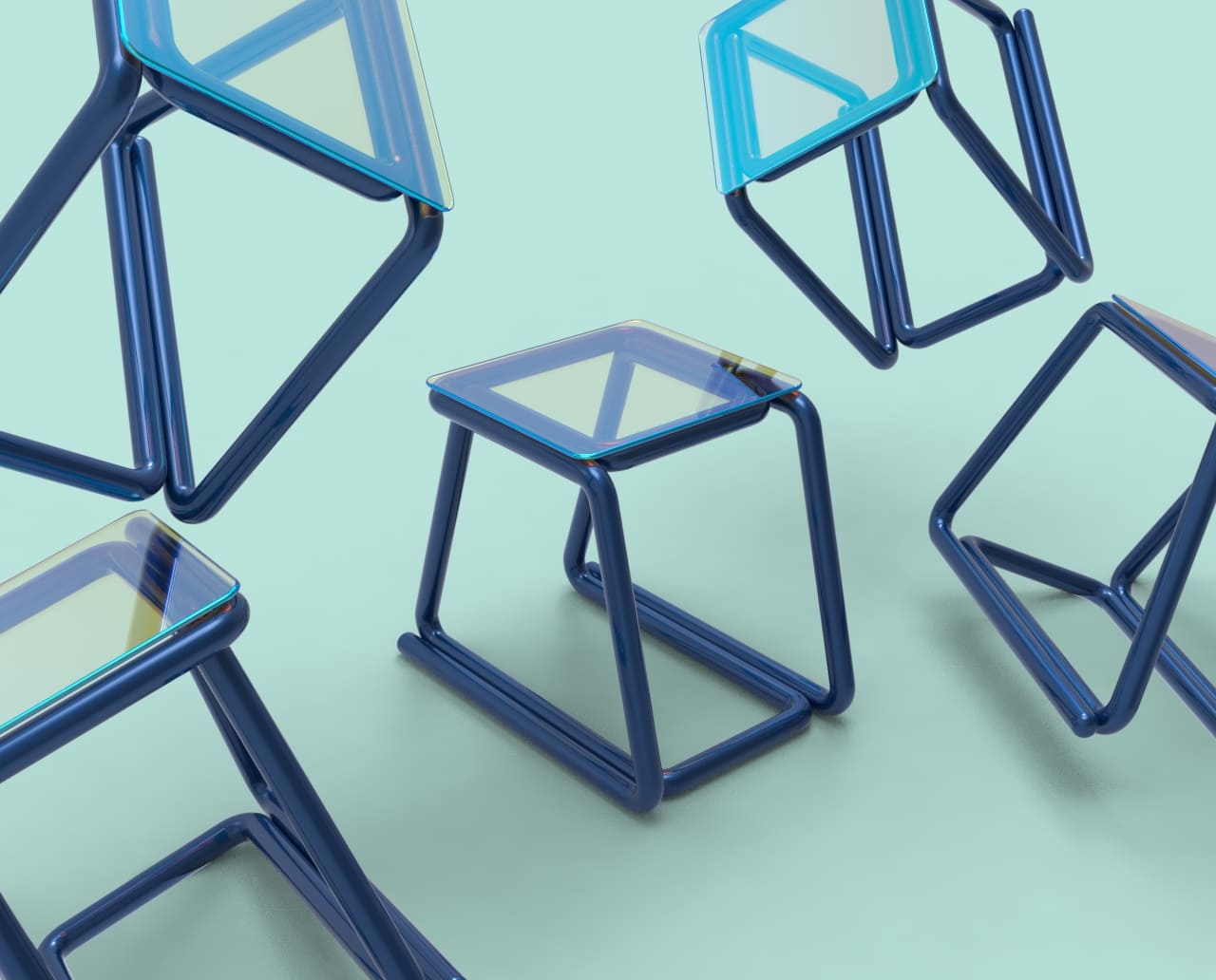 Una mesa de cristal multicolor y acero plegado, creada para un concurso de ikea